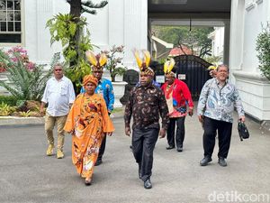 Jokowi menerima kunjungan Majelis Rakyat Papua (MRP) ke Istana Presiden. MRP memohon kepada Jokowi agar diundang ke upacara 17 Agustus di IKN.