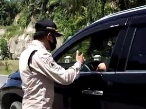 Anggota DPRD Pasaman, Martias berang saat ditegur petugas check point PSBB. Aksi kader Gerindra itu berimbas sanksi teguran hingga melakukan pembagian bansos.