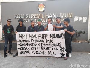 Sejumlah massa melakukan aksi demo di depan gedung DPRD Sumatera Utara (Sumut). Arus lalu lintas di sekitaran gedung dewan tersebut ditutup sementara.