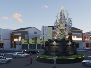 Prosesi pemelaspasan patung Wisnu Murti di Bundaran Kediri disertai dengan penanaman empat kendi berisi 500 lebih permata beraneka warna di empat sisi patung.
