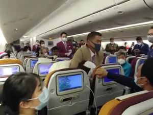 Viral video penangkapan seorang wanita asal China di pesawat Thai Airways. Diduga wanita tersebut membuat ulah dengan cara sengaja batuk di dalam pesawat.