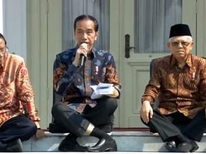 Foto Jokowi saat duduk lesehan di Istana mengumumkan para menteri Kabinet Indonesia Maju viral di media sosial. Posisi kakinya disebut bikin ngilu.