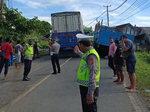 Kapolres Tabanan Tinjau Jalan Ambles di Bajera, Sopir Truk Diberi Bantuan