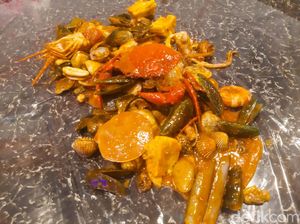 Meskipun gerobakan, warung seafood ini menawarkan jenis seafood yang lengkap. Diracik dengan bumbu saus Padang hingga balado yang pedas gurih.