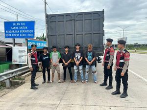 Subdit III Jatanras Ditreskrimum Polda Sumsel meringkus para pelaku pungli yang kerap mengancam para sopir di simpang Gerbang Tol Keramasan.