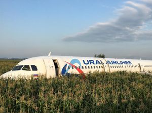 Pesawat Ural Airlines terpaksa mendarat darurat di lapangan rumput. Pendaratan itu berhasil dan semua penumpang selamat.