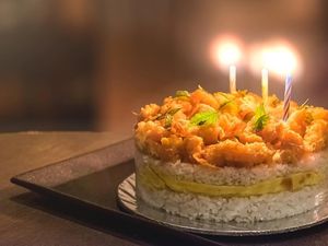 Kue ulang tahun sekarang tampil makin unik. Seperti nasi dengan ayam telur asin yang jadi kreasi seperti kue.