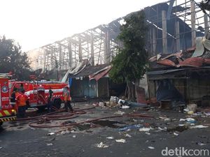 Hari kedua pascakebakaran, pedagang Pasar Legi masih belum bisa berjualan. Mereka masih harus mengikuti pendataan untuk mendapatkan kios pasar darurat.