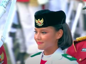 Ini sosok Aliah Sakira yang bertugas membawa baki bendera Sang Saka Merah Putih pada upacara penurunan di Istana Merdeka sore ini.