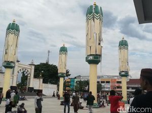 Banyaknya umat membuat masjid tidak bisa menampung sehingga jemaah meluber di bawah payung Madinah dan alun-alun kota.