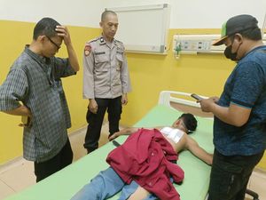 Darma, korban dugaan pengeroyokan oleh beberapa pemuda masih menjalani perawatan di rumah sakit. Polisi menyebut Darma terluka karena terserempet motor pelaku.