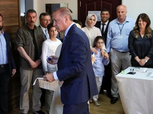 Potret Erdogan Ditemani Cucu Saat Memilih di Pemilu Turki