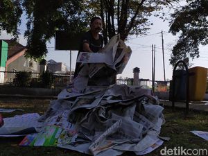 Berburu Rezeki dari Koran Bekas Salat Idul Fitri di Garut