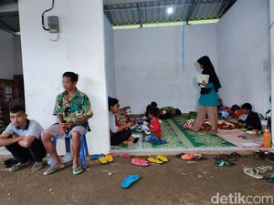 96 Warga Dusun Ngemplak, Desa Sriti, Sawoo, Ponorogo mengungsi di pasar desa. Pasalnya, ada 13 retakan yang berpotensi longsor yang akan menerjang rumah mereka.