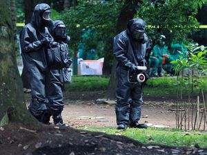 Airin datang ke lokasi limbah radioaktif sekitar pukul 09.03 WIB. Kedatangannya pun disambut Kepala Biro Humas dan Kerjasama Batan, Heru Umbara.
