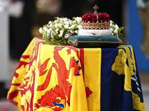 Peti mati Ratu Elizabeth II tiba di Westminster Abbey. Raja Inggris Charles III dan anggota keluarga kerajaan lainnya terlihat berjalan di belakang peti mati.