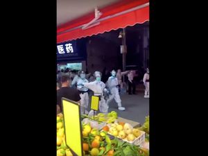 Momen Warga China Dorong-dorongan dengan Nakes Berhazmat
