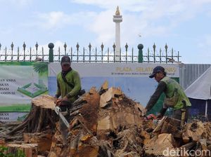 Pohon beringin besar di depan Monas, Jalan Medan Merdeka Selatan, tumbang, Senin (24/2). Pohon tumbang karena akar tidak kuat menahan beban.
