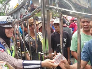 Aksi Humanis Polwan Bagikan Bunga dan Minum Saat Demo di Banjarnegara