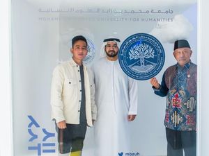 Prabowo Subianto menemui Presiden UEA Sheikh Mohammed bin Zayed Al Nahyan atau MBZ. Dalam momen itu, Prabowo memperkenalkan Gibran sebagai wapres kepada MBZ.