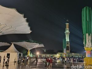 2 payung elektrik di Masjid Raya An Nur Pekanbaru kuncup atau tidak terbuka saat acara malam tadi. Lalu apa penyebab payung tak terbuka? Ini kata Dinas PU Riau.