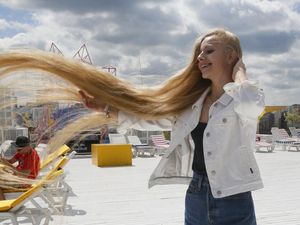 Olena Korzenyuk disebut sebagai remaja dengan rambut terpanjang di Ukraina. Tak tanggung-tanggung, panjang rambutnya mencapai 2,35 meter.