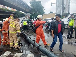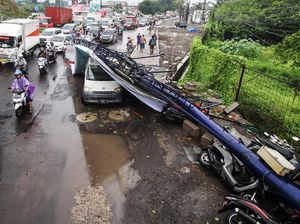 Suara 'mengerikan' terdengar sebelum papan reklame raksasa roboh di perempatan Kiaracondong, Jalan Soekarno Hatta, Kota Bandung, hantam warga di jalanan.