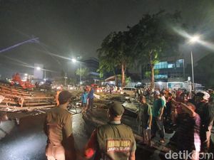 Papan Reklame Roboh di Warung Buncit Tutupi Dua Busway