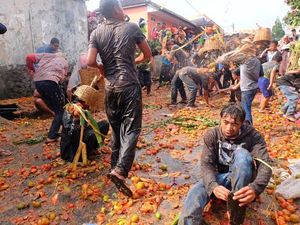 Kalau di Spanyol ada festival La Tomatina maka di Bandung ada acara Rempug Tarung Adu Tomat. Warga beramai-ramai saling lempar tomat. Seru!