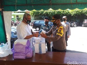 Polisi membagikan ribuan butir vitamin dan obat herbal. Yang menerima adalah para PDP dan ODP yang tengah dirawat di RSUD dr Mochamad Saleh Kota Probolinggo.