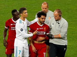 Salah jatuh dengan posisi awkward usai tabrakan dengan Ramos. Banyak spekulasi tentang cedera yang dialaminya, di antaranya dislokasi bahu dan ligament sprain.