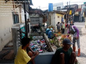 Sampah di saluran air Jalan Kusumanegara No. 7D, RT 32 Plumbon, Banguntapan, Bantul, akhirnya diangkut. Sampah itu sempat menumpuk berbulan-bulan.