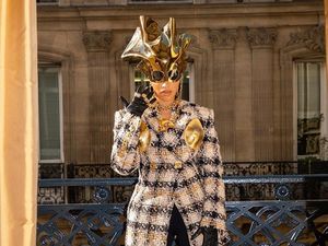 Kylie Jenner bukan satu-satunya selebriti yang mencuri perhatian di peragaan Schiaparelli. Ada Doja Cat yang datang dengan tubuh 'berkulit' 30 ribu kristal.