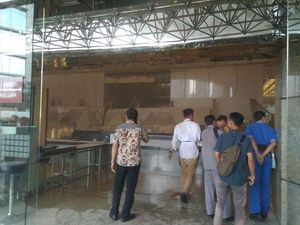 Petugas posko akan melayani kebutuhan karyawan di gedung BEI pasca ambruknya selasar di Tower II.