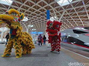Bertepatan dengan Imlek, PT KCIC menghadirkan berbagai kemeriahan di area stasiun Kereta Cepat Whoosh. Salah satunya adalah pertunjukkan barongsai.