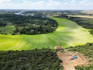 Hamparan selada air menutupi Sungai Vaal di Afrika Selatan. Meski terlihat menarik, keberadaan tanaman tersebut justru merusak lingkungan.