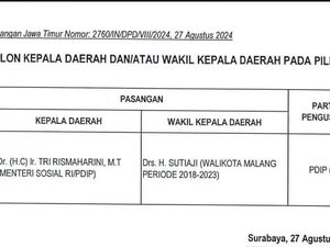 Beredar surat rekemondasi bahwa Wali Kota Malang periode 2018-2023 Sutiaji bakal mendampingi Tri Rismaharini (Risma) maju Pilgub Jatim 2024.