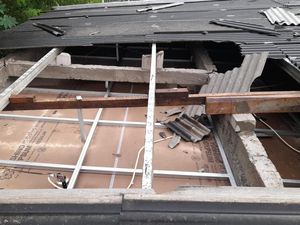 Angin kencang terjadi di Desa Sumberjaya, Tambun Selatan, Kabupaten Bekasi, Jawa Barat (Jabar). Akibatnya, banyak atap rumah warga yang rusak.