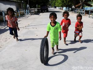 Sejumlah anak bermain di Desa Fursui, Pulau Selaru, Kabupaten Kepualaun Tanimbar. Mereka tampak bahagia bermain bersama meski tak mengenal gadget