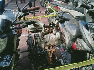 Polisi menetapkan 5 tersangka pelaku perusakan motor dan penganiayaan saat tawuran antarpesilat di Ngawi. Dari 5 tersangka, 3 diamankan dan 2 masih buron.