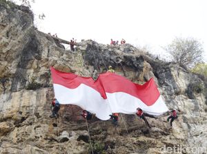Potret Sang Saka Merah Putih Berkibar di Tebing 48 Citatah