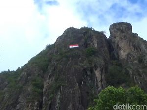 Bendera Merah Putih Raksasa Terbentang di Tebing Sepikul Trenggalek