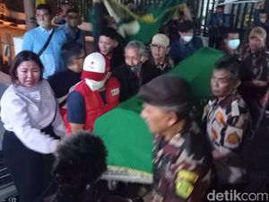 Jenazah politikus senior Tjetje Hidayat Padmadinata disambut pecahnya tangis pihak keluarga saat tiba di rumah duka di kawasan Gumuruh, Kota Bandung.