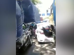 Beredar video mobil PJR terjepit di antara 2 truk. Mobil PJR ringsek di bagian depan dan belakang. Kok bisa seperti itu, bagaimana kejadiannya?