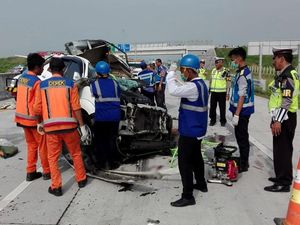 Tiga penumpang mobil Fortuner tewas kecelakaan di Tol Madiun warga Jakarta. Saat itu mobil menabrak truk muat kaca di KM 604 ruas Tol Ngawi-Kertosono.