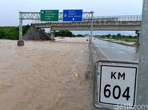 Banjir menggenangi ruas tol Madiun dengan ketinggian hampir satu meter. Genangan banjir itu tepatnya di KM 603 hingga KM 604.