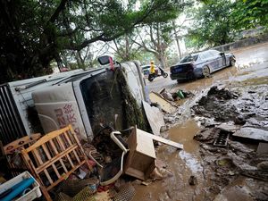 75 ekor buaya kabur dari sebuah peternakan di Danau Maoming, Provinsi Guangdong, China. Mereka lepas usai badai Topan Haikui melanda kawasan tersebut.