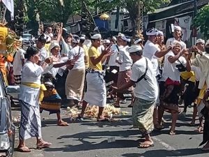 Warga Bali Berebut Uang Saat Tradisi Mesuryak Hari Raya Kuningan