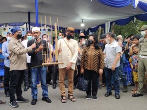 Bazar ekonomi kreatif pada perayaan Festival Seba Baduy di Lebak, Banten, diserbu pelancong dari Jakarta.