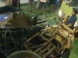 Kapal Motor Penyeberangan (KMP) Sangke Palangga dihantam gelombang tinggi di Selayar, Sulawesi Selatan. Satu truk terbalik dan menimpa truk lainnya.